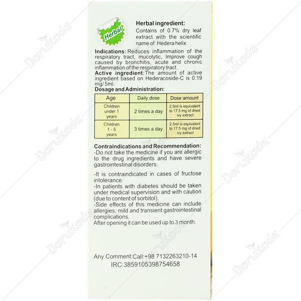 - شربت حاوی 0.7 درصد عصاره خشک برگ عشقه