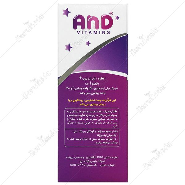 - حاوی 1500 واحد ویتامین آ و 400 واحد ویتامین د در هر یک میلی لیتر