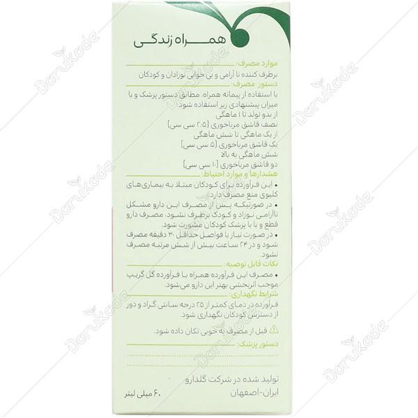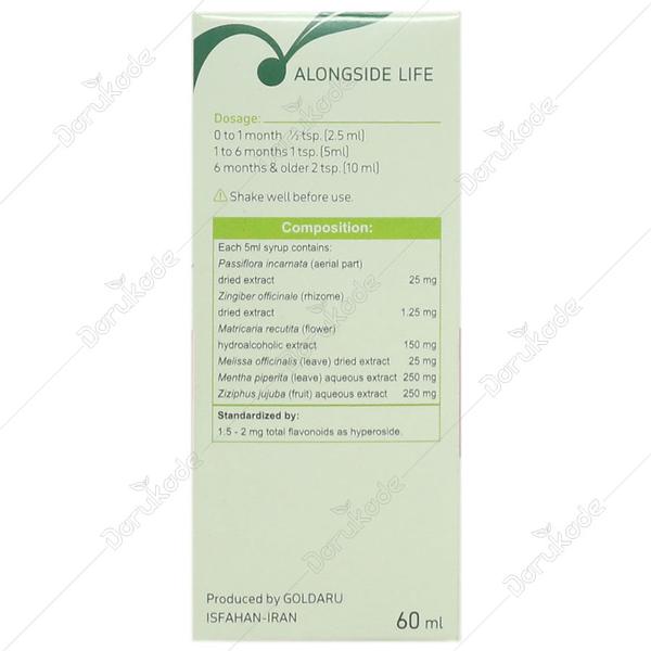 بطور کلی کلیه گیاهان بکار رفته در فرمولاسیون شربت آرام بخش نوزادان دارای اثر آرام بخشی، ضد اسپاسمی و ضد التهابی بوده و این گیاهان اثرات یکدیگر را کاملاً تشدید می نمایند. ترکیبات آزولن ملایم آرام بخشی بخصوص برای اطفال میباشد. موجود در اسانس بابونه درمهار و آزادسازی هیستامین نقش داشته و باعث مهار سنتز پروستاگلاندینها و لوکوترینها میشوند. سیترونلال، ژرانیال و نرال موجود در اسانس بادرنجبویه هم دارای اثر قاطـع و آلکالوئیـد هارمـان و هارمالیـن موجـود درگل ساعتی هم به اثبات رسیده که دارای اثر بسیار خوب آرام بخشی برای کودکان و بزرگسالان بوده و مرجع کمیسیون E آلمان به خصوص ان را در بی خوابی ها توصیه و استفاده از آن را همراه با بادرنجبویه بسیار مفید دانسته است. زنجبیل نیز افزون بر آثار درمانی متعدد با آرام کردن معده موجب آرامش کودک و بروز خواب راحت برای نوزاد می گردد، نعناع و عناب هم افزون بر خواص ضد اسپاسمی دارای اثر آرام بخشی ملایم و ضد نفخ میباشند.