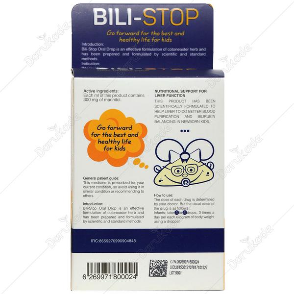- مواد موثره: هر میلی لیتر از قطره بیلی استاپ حاوی 300 میلی گرم مانیتول