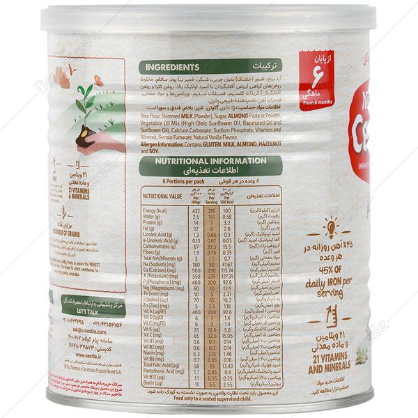 سرلاک حریره بادام به همراه شیر غذایی کاملا مقوی برای کودکان 6 ماه به بالا و مناسب تغذیه با قاشق می باشد. به دلیل تفاوت نیازهای کودکان با یکدیگر، برای تعیین زمان شروع این محصول با پزشک متخصص خود مشورت نمایید. پس از شروع تغذیه تکمیلی ، تغذیه با شیر مادر باید تا حداکثر زمان ممکن ادامه یابد. مصرف سرلاک را ابتدا با یک قاشق غذاخوری سرلاک در چهار تا پنج قاشق غذاخوری آب شروع کنید و به تدریج مقدار آن را به یک وعده کامل افزایش دهید.