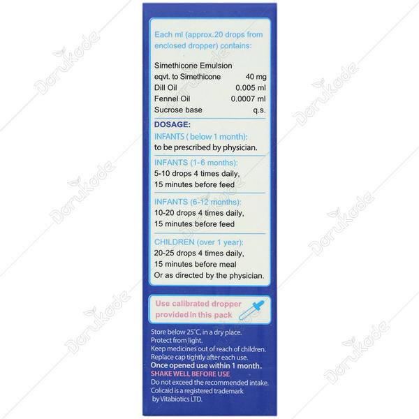 سایمتیکون : ماده موثر این محصول سایمیتیکون می باشد، این ماده با کاهش گاز در معده و روده سبب بهبود مشکل کولیک و کاهش درد ناشی از آن می شود.
