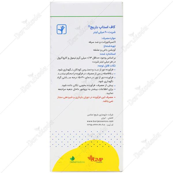 مدت مصرف: مدت درمان به دوره بیماری بستگی دارد . در صورت ادامه علائم بیش از یک هفته بروز تنگی نفس، تب یا خط چرکی یا خونی، فوراً با پزشک تماس بگیرید.