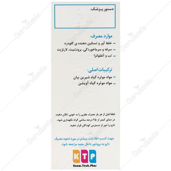 یک شربت گیاهی است که از مواد موثره ریشه گیاه شیرین بیان با نام علمی «Glycyrrhiza glabra» و نام عمومی Licorice ساخته شده است. شیرین بیان از سالیان دور تا به حال در طب چینی و طب سنتی ایران به عنوان یک خلط آور خوب، ضد سرفه قوی و درمان برونشیت، گلو درد، سرماخوردگی و آنفلونزا استفاده شده و در طب مدرن گیاهی نیز این موارد تایید شده است.