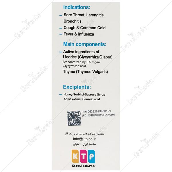 - ترکیبات اصلی: مواد موثره گیاه شیرین بیان، مواد موثره گیاه آویشن