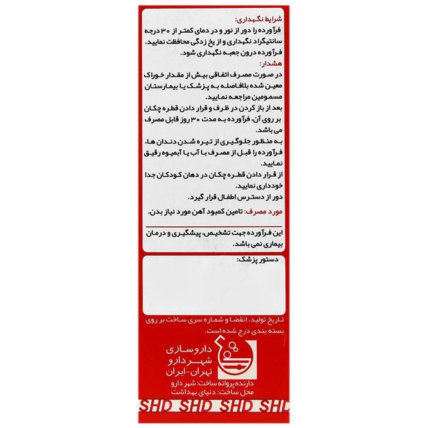 - حاوی 125 میلی گرم فروس سولفات هپتا هیدرات (معادل 25 میلی گرم یون آهن) در هر یک میلی لیتر