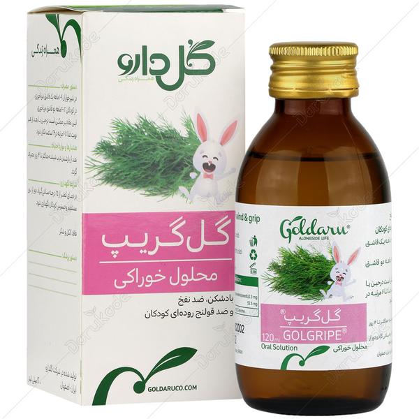- هر ۵ میلی لیتر محلول گل گریپ حاوی 2.3 میلی گرم اسانس فاقد ترپن دانه شوید و 52.5 میلی گرم بی کربنات سدیم