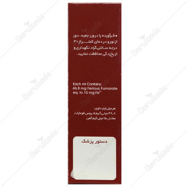 - هر میلی لیتر حاوی 46/8 میلی گرم فروس فومارات معادل 15 میلی گرم آهن
