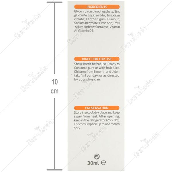 - ترکیبات: آهن لیپوزومال، روی و ویتامین های A و D3