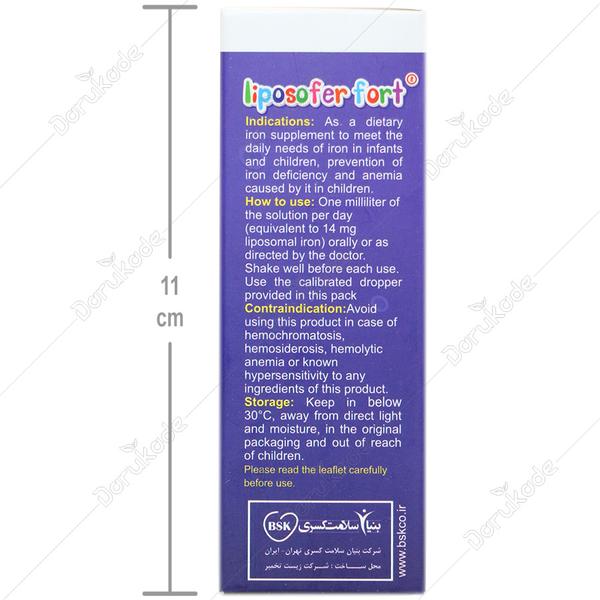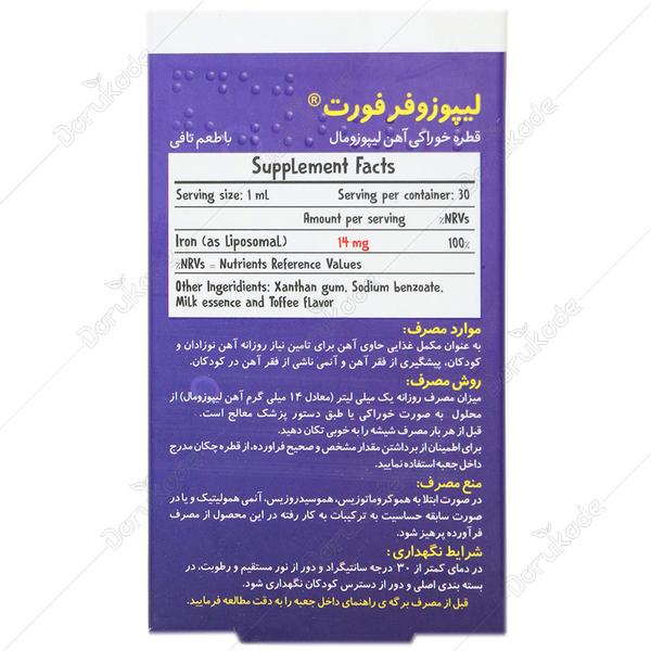 لیپوزوفر یک قطره مکمل آهن است که در آن یون آهن در داخل لایه فسفولیپید و استرهای سوکروز اسیدهای چرب قرار گرفته است و لیپوزوم های حاوی آهن به صورت دست نخورده از روده جذب می شوند. پایداری آهن در فرمول لیپوزومال بهتر است. از آنجا که آهن درون ساختار لیپوزومی به راحتی از طریق سلول های دیواره روده جذب می شود، جذب و فراهمی زیستی آن نیز بهبود یافته است و به علت عدم تماس مستقیم مولکول های آهن با دستگاه گوارش، فاقد عوارض گوارشی شایع آهن، طعم بد و خاصیت سیاه کردن دندان ها می باشد.