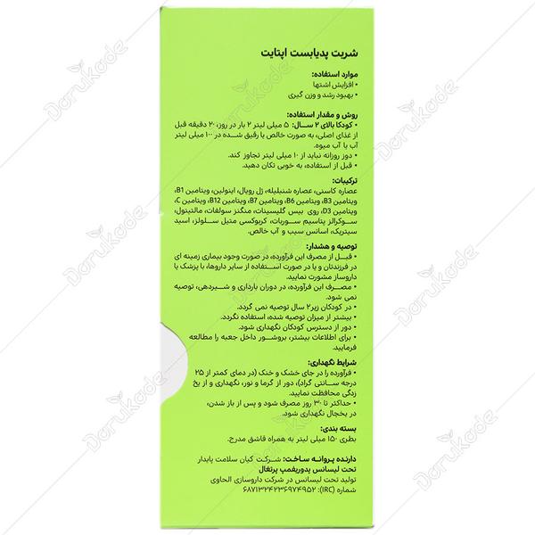 کودکان بالای 2 سال: 5 میلی لیتر دو بار در روز، 20 دقیقه قبل از غذای اصلی، به صورت خالص یا رقیق شده در 100 میلی لیتر آب یا آب میوه مصرف شود.