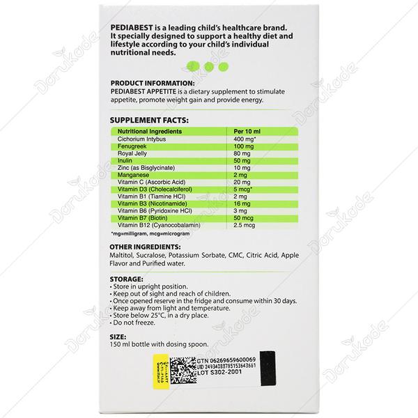 - حاوی عصاره کاسنی، شنبلیله، ژل رویال، اینولین، ویتامین های گروه B، ویتامین C، ویتامین D3 و روی