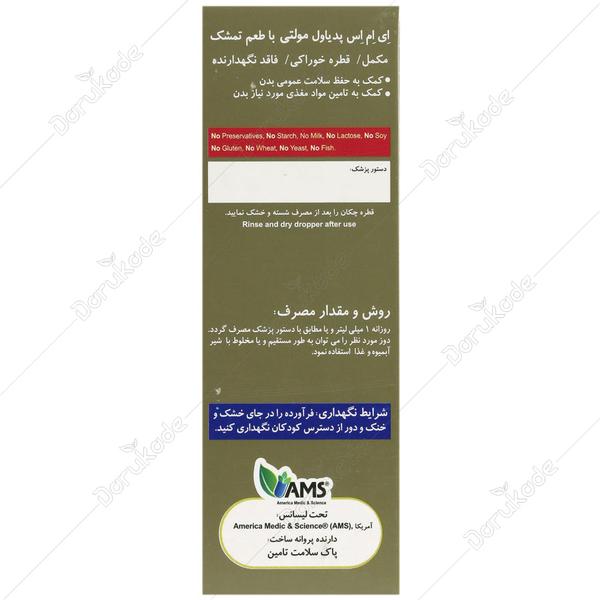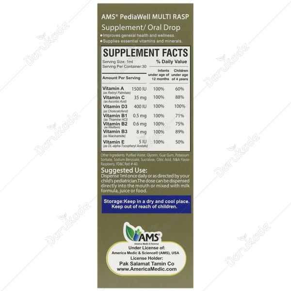 پدیاول مولتی حاوی مقادیر کافی از ویتامین های ضروری جهت تامین نیاز روزانه شیرخواران و کودکان می باشد.