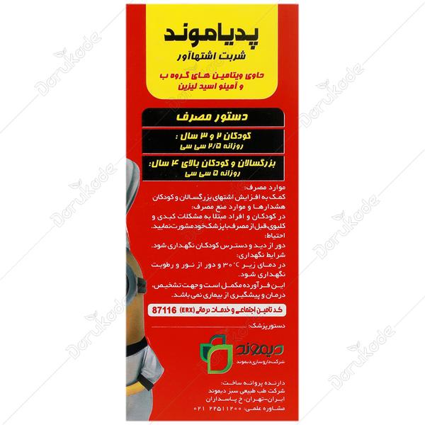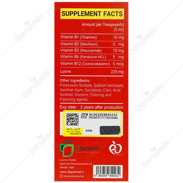 ترکیب منحصر بفردی از ویتامین های گروه ب و آمینو اسید لیزین موجود در شربت پدیاموند باعث افزایش متابولیسم پروتئین ها چربی ها و کربوهیدرات ها می شود.