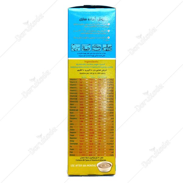 شیر مادر بهترین غذا و بی همتاست و به تنهایی تا پایان ماه ششم قادر به برآوردن کلیه نیاز های تغذیه ای نوزاد می باشد . اما از ابتدای ماه هفتم باید علاوه بر شیر مادر به تدریج از غذای کمکی ساده و زودهضم مثل حریره بادام ، فرنی و سوپ استفاده نمود تا رشد و سلامت شیر خوار به خوبی تامین گردد . غذای کمکی را باید از مقدار کم شروع کرد و با توجه به تحمل شیرخوار و با مشورت پزشک یا متخصص تغذیه ، مقدار آن را افزایش داد . از انتهای 6 ماهگی میتوان از این فراورده استفاده کرد . برای کودکان 6 تا 8 ماه 1 تا 2 وعده و برای 8 ماه به بالا 2 تا 4 وعده میتوان تهیه کرد .