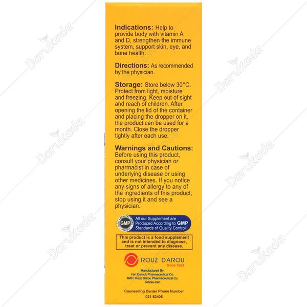 - حاوی 400 واحد ویتامین د3 و 1500 واحد ویتامین آ
