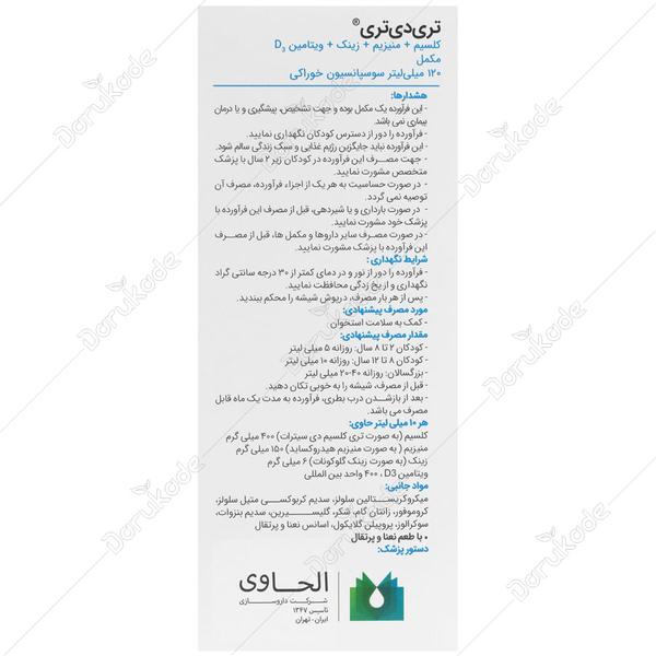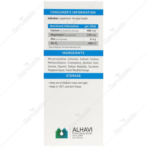 - فرآورده به صورت سوسپانسیون خوراکی حاوی 400 میلی گرم کلسیم، 150 میلی گرم منیزیم، 6 میلی گرم زینک و 400 واحد بین المللی ویتامین D3 در هر 10 میلی لیتر