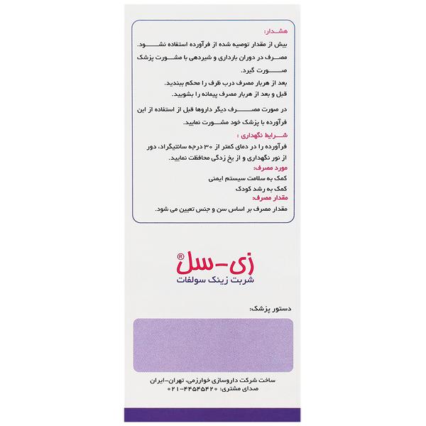 - هر پیمانه (5 میلی لیتر) حاوی 22 میلی گرم زینک سولفات هپتا هیدرات معادل 5 میلی گرم زینک