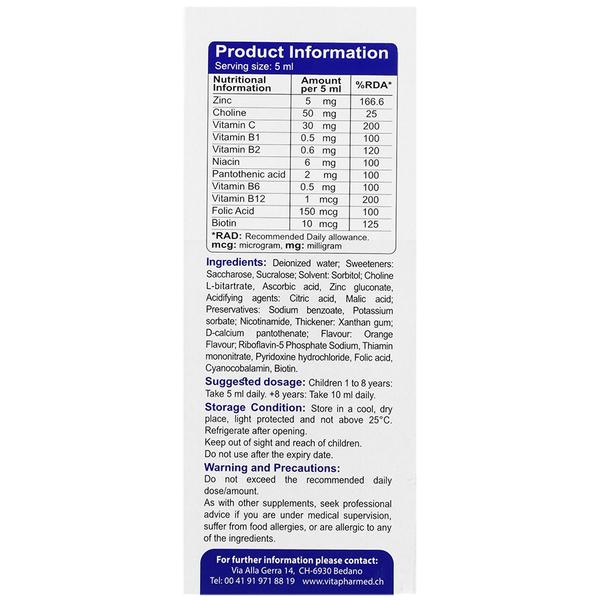 کودکان 1 تا 8 سال: روزانه 5 میلی لیتر و یا طبق تجویز پزشک.